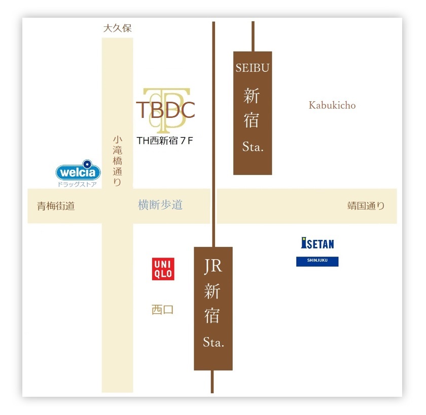 TBDCは新宿駅の西口から【徒歩5分】インビザラインの2カ月に1回の通院に大変便利です。