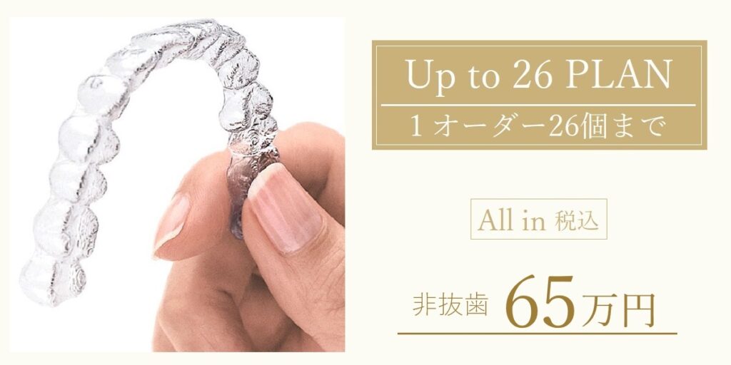 インビザラインのマウスピースが1オーダーで26個までの非抜歯治療プランです。